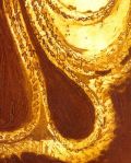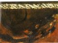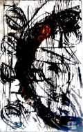 Portanto sua poética plástica faz surgir de um anterior primal da escrita, para reconquistar, na trama do visível, esta expressão escritural original, numa fonte primeira e elementar que antecede a todo o desenho e pintura: grahaphein – o grahaphein original grego primitivamente ligado ao verbo graphô “arranhar, riscar”, “descascar, escorchar, escoriar” que reúne e designa num mesmo lexema os atos de “escrever, desenhar” e “traçar linhas, pintar”. Escrever, desenhar, pintar: o por em obra o grahapein obriga a se manifestar a fecundidade criadora de uma prática originária do graphô pluridimensional e arqueológico. Destino inviolável dos signos que leva à modalidade concreta através da qual a função se exprime em realidade.